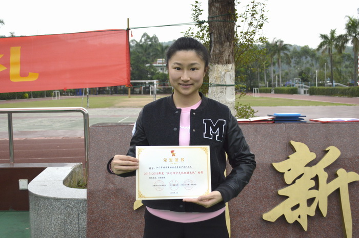 ▲在2018年第三屆尋找“最美五邑少年”活動中,儲婉璇同學榮獲江門市“優(yōu)秀共青團員”、“自強好少年”稱號,鄧宇晴同學榮獲江門市“優(yōu)秀共青團員”、“活力好少年”稱號