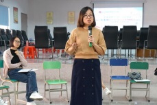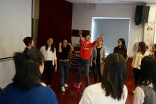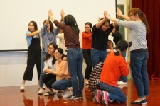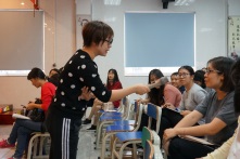 黃艷教授積極引導(dǎo)教師們探索新興教學(xué)模式,倡導(dǎo)“讓學(xué)習(xí)發(fā)生”的改革理念。講座分為兩部分,第一部分教授邀請老師們以學(xué)生的身份體驗多個課堂戲劇教學(xué)游戲和活動。讓大家通過親身參與掌握如何利用戲劇教學(xué)引導(dǎo)學(xué)生學(xué)習(xí)不同類別的知識。