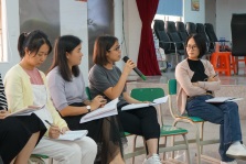 隨后,小學(xué)英語科組和工作室成員圍坐一起展開了友好交流。大家對李老師的課表示欣賞,提出了很多亮點,同時也針對個別不足之處給予了一些誠懇的建議。陳曉瓊老師以ask and answer形式,與全體參與研討活動的老師作了題為“語言能力整體性的學(xué)與用”的討論分享。大家都積極提出問題,把在日常教學(xué)中碰到的疑惑和困難都拋出來,讓思維相互碰撞,尋找適合的方法和解決辦法。