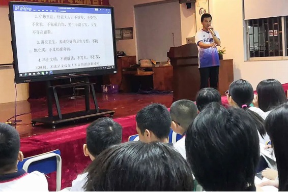 ◥鐘明洋副校長(zhǎng)與同學(xué)們分享如何“做一名優(yōu)秀的福泉中學(xué)生”。他的講解深入淺出,貼近實(shí)際,為同學(xué)們未來(lái)三年的初中生活指引方向。