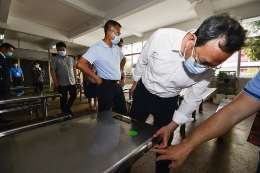 劉毅市長(zhǎng)一行先后前往校門口、飯?zhí)?、宿舍、校醫(yī)室等重點(diǎn)防控區(qū)域進(jìn)行實(shí)地考察,詳細(xì)檢查了我校學(xué)生復(fù)學(xué)返校、校園環(huán)境消殺、防疫物資儲(chǔ)備、學(xué)生寄宿管理、就餐安全保障等工作。