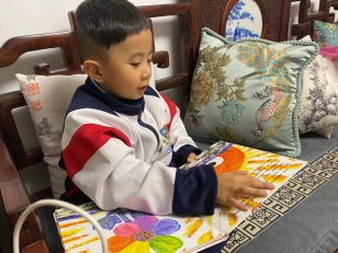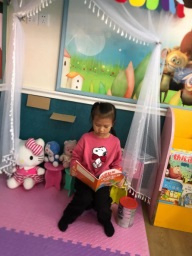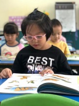 “在幼兒園,有老師和小伙伴陪伴我閱讀,我每天遨游在書的海洋里,可開心了!”