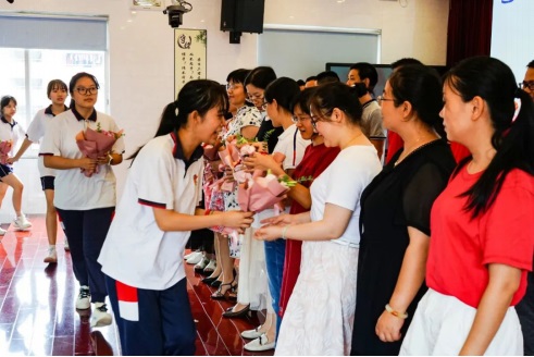 一束鮮花解萬(wàn)語(yǔ)。典禮上,學(xué)生代表向?qū)W校領(lǐng)導(dǎo)、班主任、老師們獻(xiàn)上了鮮花表達(dá)謝意。這三年,老師,您辛苦了!