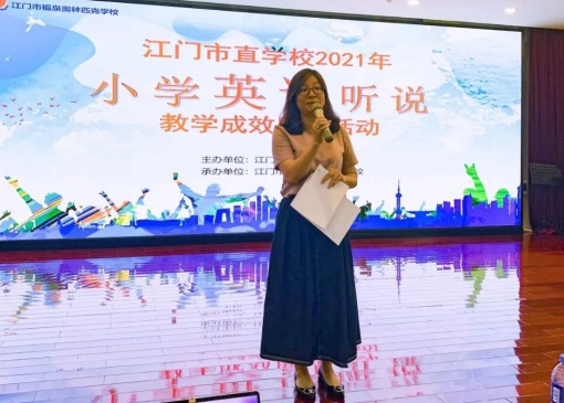 江門市教育研究院小學英語教研員陳曉瓊老師宣布獲獎名單并進行頒獎。