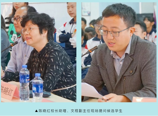 為了給同學們提供一個展現(xiàn)自我,服務校園的平臺,學校團委組織了初中部學生會干部換屆選拔賽。12月8日下午,師生代表共聚學校四樓多功能廳,活動如火如荼進行中,氣氛熱烈,掌聲迭起。由鐘明洋校長、陳曉紅校長助理、何梓林主任、文程副主任、葉頌堯團委書記、區(qū)嘉賢副書記、上屆學生會干部和班級學生代表組成評審團,一起見證了“新一屆學生會掌舵者”的產(chǎn)生。