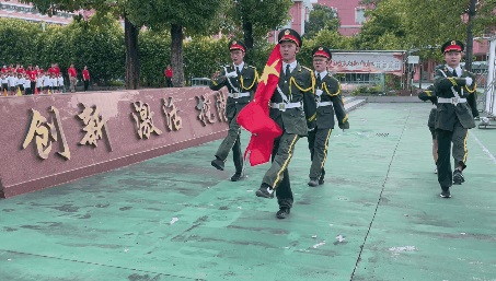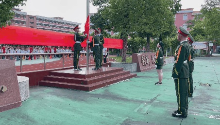 國(guó)旗隊(duì)邁著矯健整齊的步伐入場(chǎng),全體師生齊唱國(guó)歌,在嘹亮高昂的歌聲中,鮮艷的五星紅旗冉冉升起。