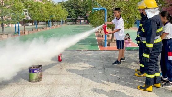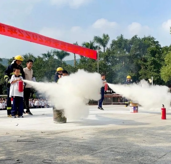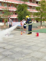 我校消防隊(duì)隊(duì)員王達(dá)雄老師向全體師生詳細(xì)講解常用干粉滅火器的使用步驟,并安排各級(jí)學(xué)生代表一一上場(chǎng),實(shí)際操作如何使用滅火器滅火。