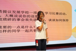 德育處何梓林主任作總結(jié)發(fā)言,首先他對(duì)往屆學(xué)生會(huì)各部門(mén)優(yōu)異成績(jī)作出表?yè)P(yáng),并對(duì)積極參選的學(xué)生給予鼓勵(lì)。然后,何主任寄語(yǔ)新當(dāng)選的學(xué)生會(huì)干部要以身作則,做全體同學(xué)的榜樣,要處理好工作與學(xué)習(xí)的關(guān)系,充分發(fā)揮學(xué)校和同學(xué)之間橋梁和紐帶的作用。