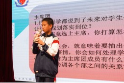 經(jīng)過(guò)班主任初審鑒定、團(tuán)委層層選拔,然后通過(guò)激烈的初賽篩選,本輪共有25名同學(xué)從百多名競(jìng)爭(zhēng)者中脫穎而出,角逐七大部門(mén)負(fù)責(zé)人崗位。候選人賽前認(rèn)真準(zhǔn)備,制作了圖文并茂的競(jìng)選課件。