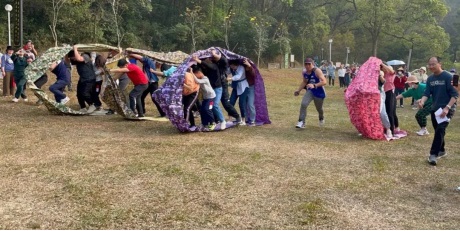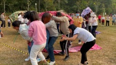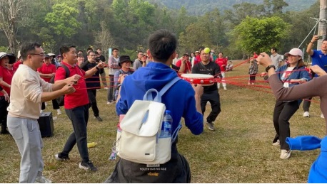 來到大草坪,教職工按部門組成小隊,充分發(fā)揚團隊合作精神,積極投入團建活動。本次活動設(shè)置“無敵風火輪”、“鼓動人心”兩大集趣味性和協(xié)作性于一體的競技項目,考驗大家的信任與默契,既鍛煉了身體,又突破了自我極限。整個過程歡樂無比,現(xiàn)場掌聲、笑聲此起彼伏,熱鬧非凡。