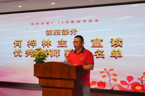黨支部梁協(xié)和書記發(fā)表熱情洋溢的講話。梁書記向全體老師致以節(jié)日的問候,并高度評價了老師們辛勤耕耘、敬業(yè)奉獻的精神風(fēng)貌。同時,梁書記對全體教師提出了殷切期望:希望全體老師牢記立德樹人的神圣使命,繼續(xù)發(fā)揚“銳意創(chuàng)新潮頭立,百舸爭流敢為先”的精神,用奮斗創(chuàng)造歷史,用實干再創(chuàng)佳績。