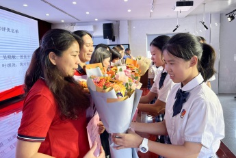 何梓林主任宣讀一系列表彰名單。學(xué)校領(lǐng)導(dǎo)為受表彰集體和個人頒發(fā)榮譽證書,學(xué)生代表向獲獎老師獻花?,F(xiàn)場氣氛活躍,掌聲不斷。