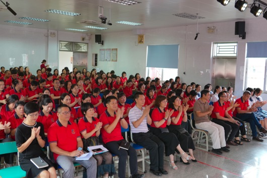 鐘明洋校長作總結(jié)發(fā)言。他首先代表學(xué)校領(lǐng)導(dǎo)班子向受到表彰的集體和個人表示祝賀,希望全體教職工以他們?yōu)榘駱?,向先進學(xué)習(xí)。鐘校長表示,過去一學(xué)年,在全體師生的共同努力下,我校師生隊伍不斷壯大,教學(xué)設(shè)施不斷完善,教學(xué)質(zhì)量穩(wěn)步提升,辦學(xué)成績不斷提高,贏得了社會各界的贊譽。我校將堅定“理科優(yōu)先,全面發(fā)展”的辦學(xué)特色,深耕自身優(yōu)勢,在實踐中進取,在發(fā)展中提升,在創(chuàng)新中突圍,朝著辦好“江門市乃至廣東省老百姓滿意的優(yōu)質(zhì)民辦學(xué)?!钡哪繕硕恍笂^斗。