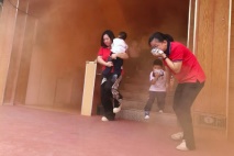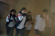 上午9:35,警報(bào)聲響起,師生聞聲而動(dòng):教師鎮(zhèn)定指揮,學(xué)生有序疏散。在老師的指揮下,幼兒園、小學(xué)樓、綜合樓三棟大樓的學(xué)生彎著腰,用濕手帕、浸濕的外套等捂住口鼻,沿著指定逃生路線快速有序地撤離到安全地帶。