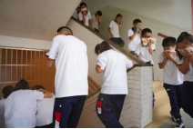 各班清點(diǎn)人數(shù)并層層上報(bào),在規(guī)定時(shí)間內(nèi),全校師生全部安全疏散完畢。