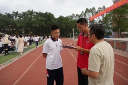 我校消防隊(duì)隊(duì)長(zhǎng)黃堅(jiān)宏老師匯報(bào)本次演習(xí)情況。