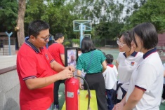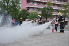 我校消防隊(duì)隊(duì)員向全體師生詳細(xì)講解干粉滅火器的使用方法,并安排不同年級(jí)的學(xué)生代表上臺(tái),在學(xué)校消防員的指導(dǎo)下使用滅火器滅火。