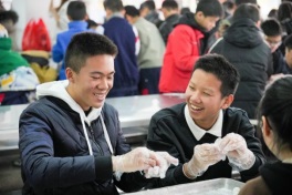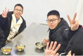 晚自習(xí)放學(xué)的時候,同學(xué)們手捧一碗碗甜甜的湯圓圍坐在一起,臉上洋溢著幸福的笑容。