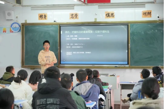 宣講中,學長學姐們大方分享自己當年備戰(zhàn)中高考時的寶貴經(jīng)驗,全程干活滿滿,內(nèi)容涵蓋沖刺階段的系統(tǒng)復(fù)習,大考前心理狀態(tài)的調(diào)整,應(yīng)試技巧的應(yīng)用,課外知識的積累以及體育鍛煉的堅持等,給學弟學妹們予以深刻的啟發(fā),讓他們感受到名校其實并不遙遠,只要懂得如何努力,夢想定會變成現(xiàn)實。學長學姐們還介紹了大學豐富多彩的生活,鼓勵學弟學妹要堅定信心,勇敢追夢。學長學姐們的分享給學弟學妹們提供了直接的幫助,現(xiàn)場氣氛熱烈,掌聲連連。