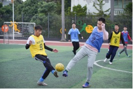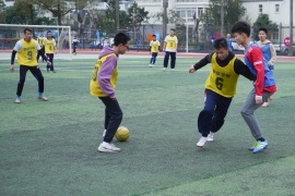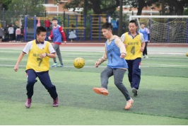 下午4點40分,隨著主裁判一聲哨響,足球交流比賽正式開始。在校師生隊展現(xiàn)了嫻熟的足球技巧,默契的配合,場上表現(xiàn)精彩連連。已經(jīng)是大學生的學長們,身體變得更加強壯,動作變得更加敏捷,技術(shù)變得更加嫻熟。他們在球場上奮力奔跑,輾轉(zhuǎn)騰挪,讓前來觀戰(zhàn)的師生們情不自禁地加油,吶喊?;秀遍g,他們似乎又回到了當年的運動場,正進行一場場酣暢淋漓的足球比賽。