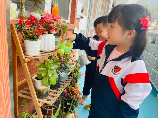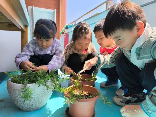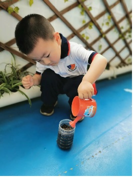 中班幼兒將自己種植的植物,進(jìn)行精心呵護(hù),施肥—澆水,相信在不久以后,綠植們會(huì)茁壯成長(zhǎng)。