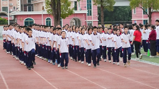 伴隨著輕快愉悅的旋律,同學(xué)們統(tǒng)一身著校服,邁著整齊的步伐按抽簽的順序有序入場(chǎng)。在廣播操輕快的節(jié)奏中,比賽正式拉開帷幕。