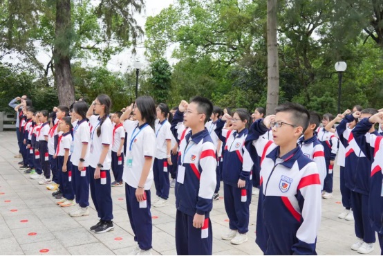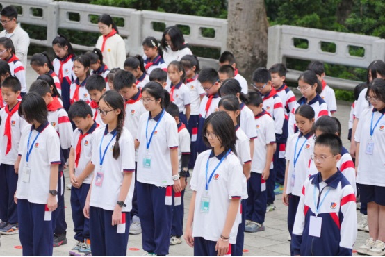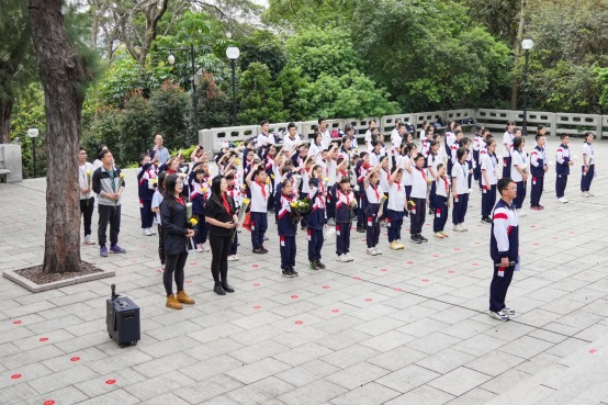 活動最后,全體人員在大隊副輔導員唐敏瑩老師的帶領下進行呼號:“時刻準備著:為共產(chǎn)主義事業(yè)而奮斗!”師生們把對人民英雄深深的哀思和崇高的敬意化作呼號聲,響徹云霄。