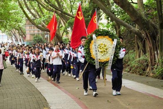 隨后,師生依次到紀念碑前敬獻花圈、鮮花,傳遞對英烈的敬仰與感恩之情。