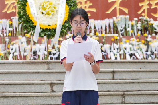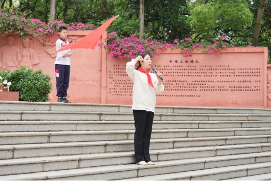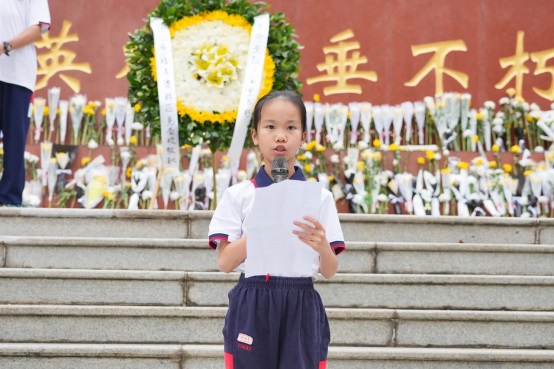 少先隊員代表楊鈺雯用鏗鏘有力的語言,深情地表達了對革命先烈的深切緬懷和無盡敬仰。