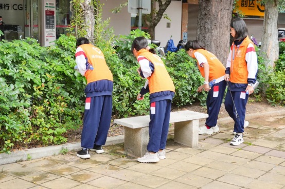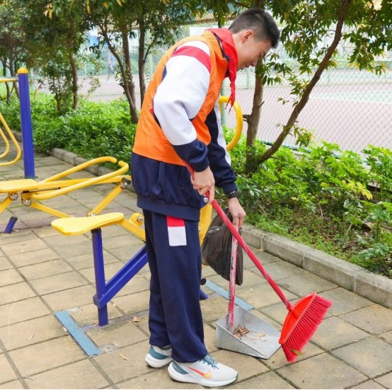 離開英雄山時,師生們自覺開展志愿服務,清掃地面、撿拾垃圾,清理花圃和樹葉。