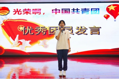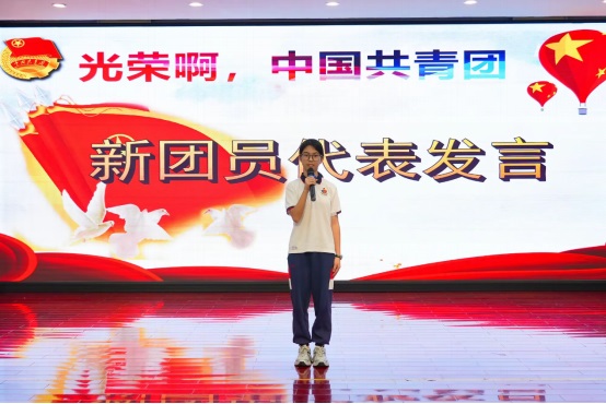 新團員代表林子洋同學莊嚴承諾:“作為新團員,我們肩有不可推卸的責任。當你我戴上團徽,這意味著團員并不是一種榮耀,而是一種責任,既然我們是團員,就不能讓生命中的任何一天虛度;既然我們是團員,就不能讓所做的任何一件事有愧于心。用行動為團旗添彩,用責任感和使命感澆鑄堅實的團徽!”
