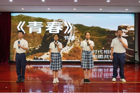 1.黎思誠、郭詩璇、陶欣怡、黃思成同學帶來詩朗誦《百年青春》。穿越歷史,與革命志士李大釗進行青春的對話,也是青春的接力,為祖國而奮斗。