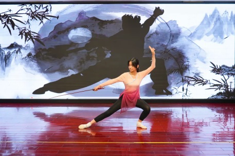 3.鐘麗茵同學的表演既有扇子舞的柔美,也有舞劍的英姿颯爽,中華傳統(tǒng)文化之瑰寶,盡在這里展現(xiàn)。