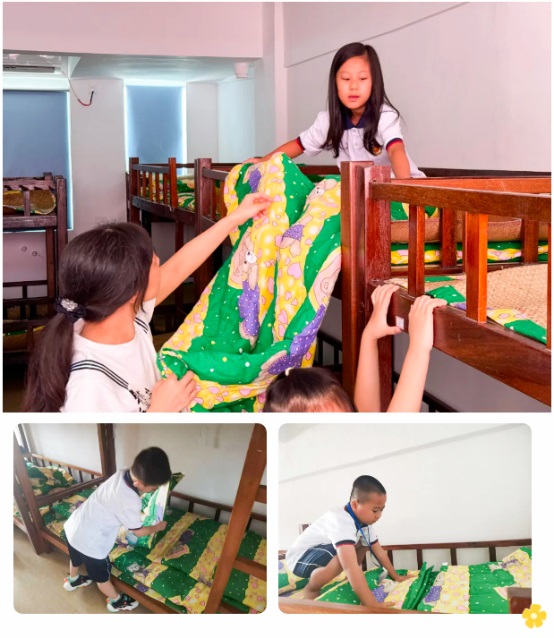 午餐過后,孩子們在老師的帶領(lǐng)下回到宿舍,然后安靜入睡。他們在這寧靜的新環(huán)境中,呼吸平穩(wěn),嘴角掛著滿足的微笑,對這片新天地的喜愛在他們甜美的夢境中悄然生長。