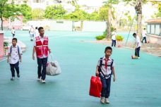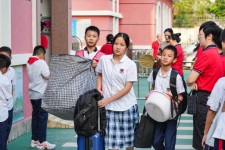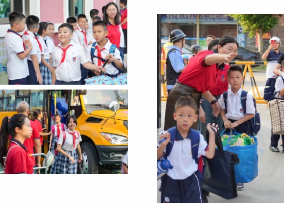 熱情的志愿者們幫忙拿行李,一路護(hù)送同學(xué)們到教學(xué)樓。
