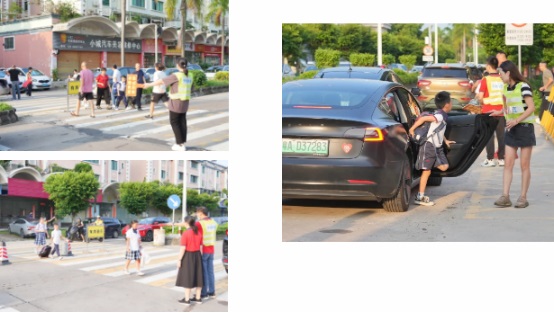 家長(zhǎng)義工們一大早就來(lái)到學(xué)校,與值班老師、交警一起維持交通秩序,為孩子們平安返校保駕護(hù)航。