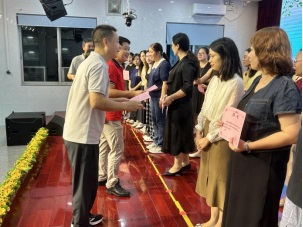 鐘明洋校長代表學(xué)校向羅雪超女士敬贈鮮花,感謝以她為代表的家委們的辛勤付出。