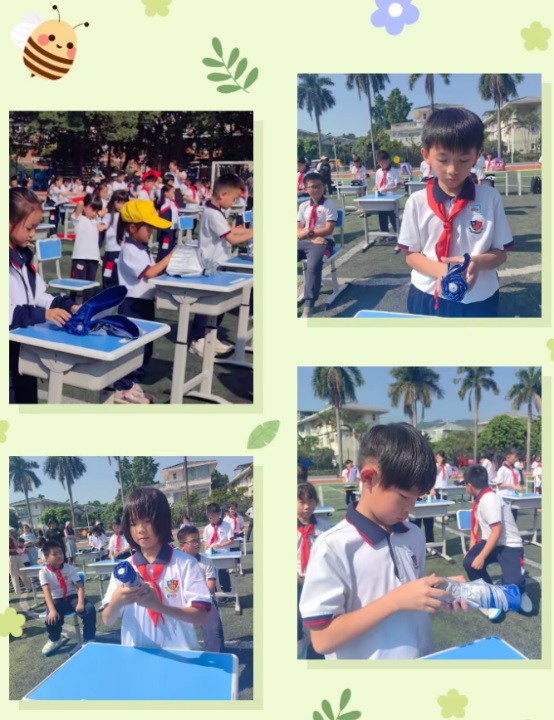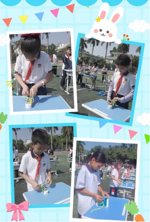 整理書包、折雨傘、戴紅領(lǐng)巾、扎頭發(fā)、系鞋帶、釘紐扣看似簡單,實(shí)則暗藏玄機(jī),考驗(yàn)每一位參賽者的細(xì)心與耐心。同學(xué)們的動作流暢有力,仿佛每一個細(xì)節(jié)都經(jīng)過了無數(shù)次的練習(xí)和打磨,以一絲不茍的態(tài)度以及細(xì)致的手法展示他們的風(fēng)采。下面我們看看選手們的精彩表現(xiàn)吧!