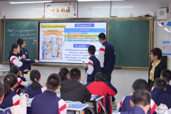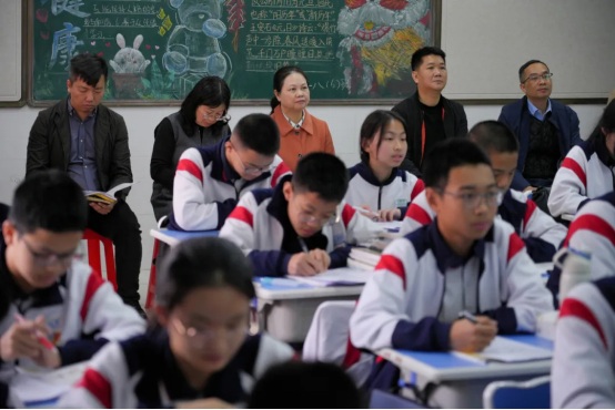 隨后,調研組一行隨機進入教室 “推門聽課”,考察教學情況。本節(jié)課由中學英語科組的鐘曉慧老師執(zhí)教。她教態(tài)自然、精神飽滿,講課富有激情,教學過程中突出重點、突破難點,展現(xiàn)了扎實的教學功底。學生們踴躍發(fā)言,課堂氣氛熱烈,充分彰顯了我校自主探究與合作學習模式的顯著成效。