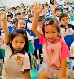 孩子們認(rèn)真聽講,回答問題時(shí)積極舉手發(fā)言。