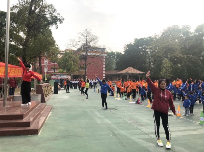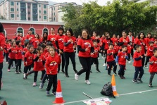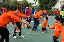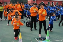 在陳碧雯老師帶領(lǐng)下,小朋友和家長跳起律動操,做好熱身準(zhǔn)備。