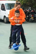 “跳跳球太刺激啦!既要考驗我們的彈跳能力,更考驗我們的平衡能力。”