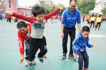 12月13日,初冬的校園,陽光明媚,天高氣爽,孩子們在明媚的陽光下迎來了福泉奧校幼兒園一年一度的親子運動會。隨著雄壯的《運動員進行曲》響起,在老師的帶領(lǐng)下,小小健兒們邁著矯健的步伐,踏著強勁的節(jié)拍,和爸爸媽媽一起進入運動場。
