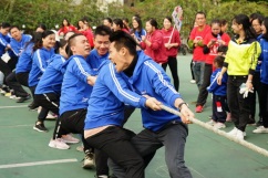 拔河比賽把運動會推向高潮,只見家長們摩拳擦掌,緊握繩子,卯足了勁把繩子往后拉,比賽現(xiàn)場的氣氛緊張又激烈。