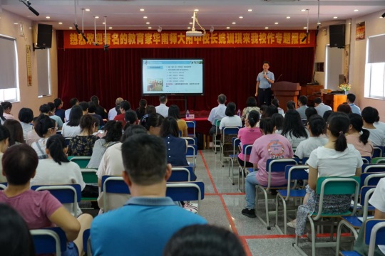 8月24日下午,華南師范大學(xué)附屬中學(xué)黨委書記兼校長(zhǎng)姚訓(xùn)琪應(yīng)邀來到福泉奧校,在四樓多功能廳作題為《共建華南師大附中“美德·學(xué)術(shù)共同體”》的專題報(bào)告。我校行政領(lǐng)導(dǎo)以及全體教師出席并聆聽了報(bào)告,報(bào)告會(huì)由鐘明洋副校長(zhǎng)主持。