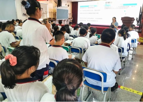 林佩珠老師給即將參加中考的九年級(jí)學(xué)子帶來(lái)了一場(chǎng)實(shí)用的考前訓(xùn)練。林老師用“烏鴉和烏龜”的熱身游戲,讓同學(xué)們迅速清空頭腦中的壓力感,積極投入講座。