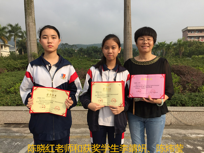 2015年江門市中小學(xué)生“走進(jìn)書的世界”征文比賽活動(dòng)評(píng)比揭曉,此次江門市參賽的征文作品共1389篇,經(jīng)有關(guān)專家認(rèn)真評(píng)審,共評(píng)審出獲獎(jiǎng)作品182篇,優(yōu)秀指導(dǎo)老師69名,我校有下列師生獲獎(jiǎng)
